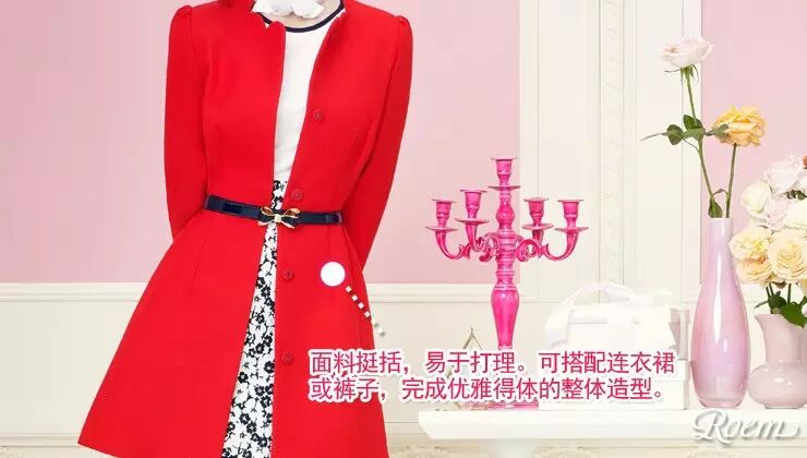 Classic red coat, perfectly in tune with the atmosphere of the New Year, manufacturing fashion festive atmosphere of a degree.